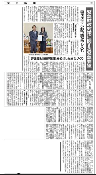 12月1日に市長に直接申し出をした「緊急財政対策に関する緊急要望」は、